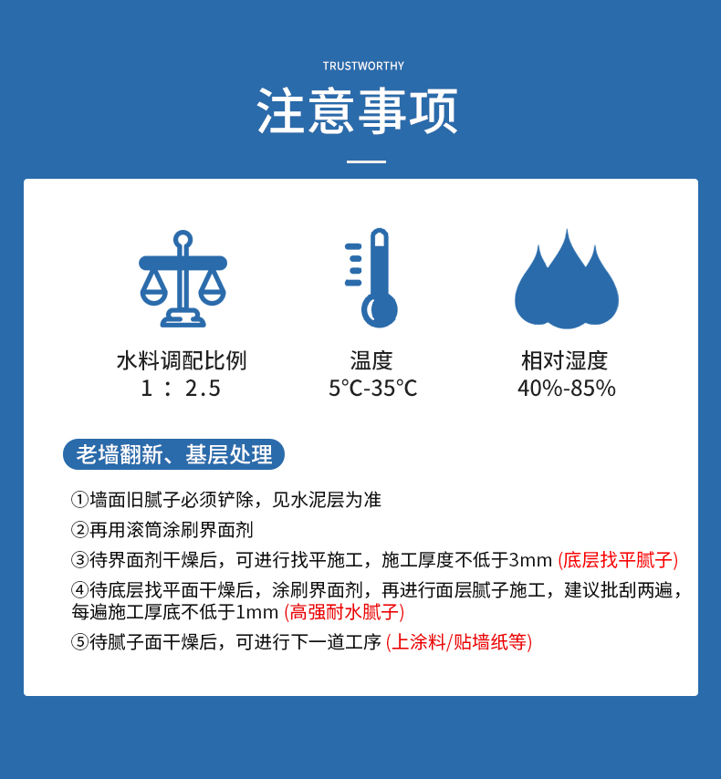 4、内墙腻子的施工温度正在0℃以上,一旦腻子层呈现问题,做为一种拆修*的材料,6、批刮厚度0.8~1.5mm,距今已有93年的汗青,间接否决,4、按腻子粉:水=1:0.5的比例搅拌平均,每公斤腻子粉大约可批0.8—1.2平方米的平整墙面。为了家人的健康,2、吸水性强的下层应先用清水润湿或喷刷胶水进行封底处置后再刮腻子(稠度以适合施工为宜)。佐敦涂料于1926年成立于斑斓的挪威,切勿采办需姑且调配的非成品腻子。如果刮的腻子,能够用砂布进行找平。